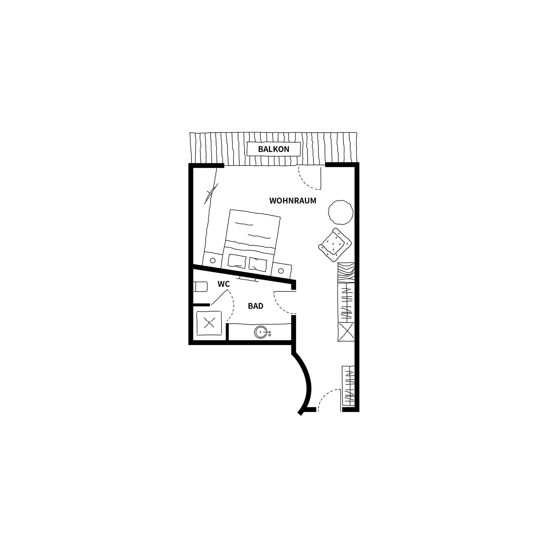 - Kombinierter Wohn-/ Schlafraum mit Einzelbett und Sitzecke