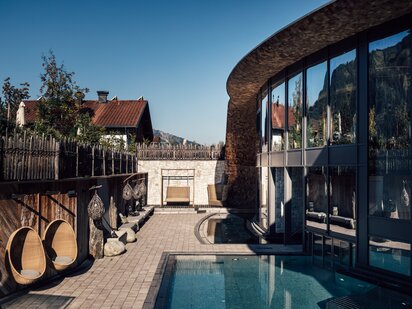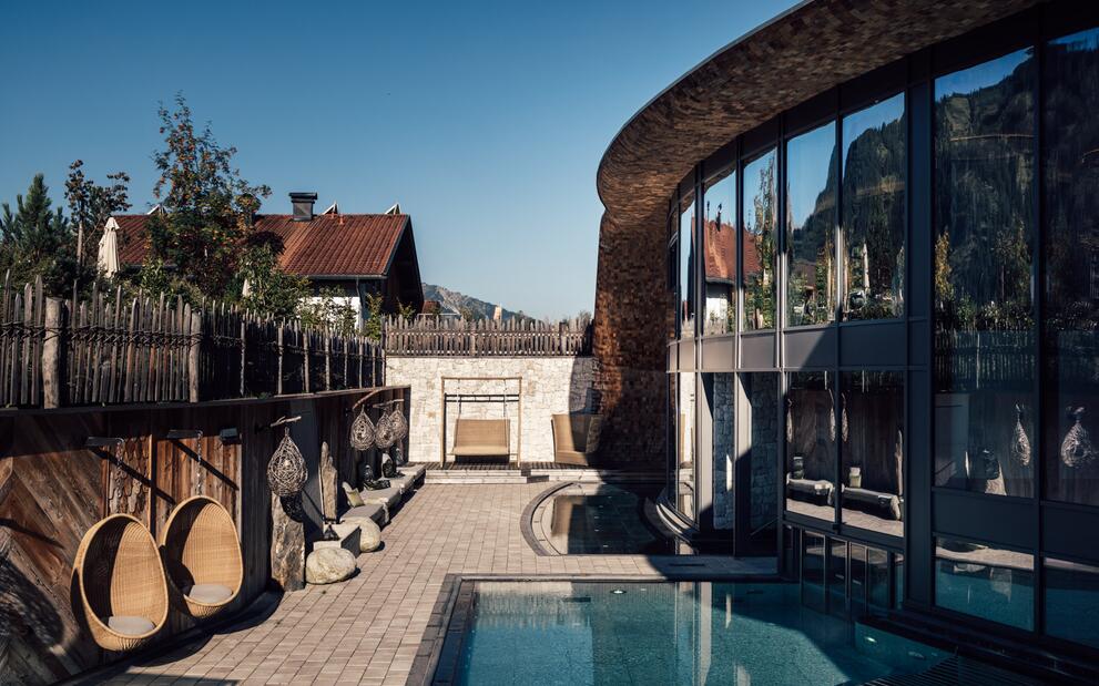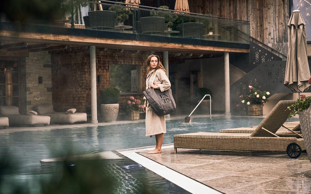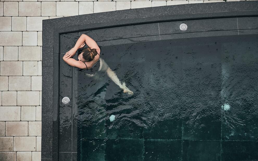 Als Wassertropfen auf die Erde und als Dampf zurück in den Himmel - alles fließt, alles ist rund, im Kreislauf. Wasser bedeutet Leben. Wasser hat Kraft. Wasser ist rein. Wasser lässt uns schwerelos fühlen. Wir holen diese alpine Kraft direkt in unseren Orgänic Spa. Lass dich in unseren Pools treiben, genieße die Momente der Schwerelosigkeit und tauch ein in eine Welt der reinsten Entspannung. Wellness im Hotel der Engel kühlt und energetisiert, reinigt und beruhigt, erdet und zentriert und ist zugleich nachhaltig. Das erwartet dich: