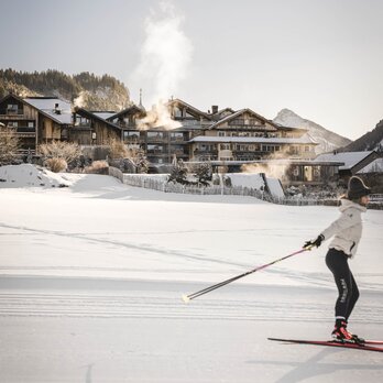 The Engel lies in one of Austria's most beautiful cross-country skiing regions, perched above (or, at least, nearly above) the clouds at 1,138 metres altitude. The Tannheim Valley is known as one of the most idyllic high alpine valleys— not only in Austria but in the whole world. Whether you glide up to the peaks in ski boots or by gondola, cruise down the slopes on two skis (or just one), or find your inner balance in a yoga session, one thing's for sure: adventure awaits. Sounds like a plan? Then off the sofa and into your sports gear!