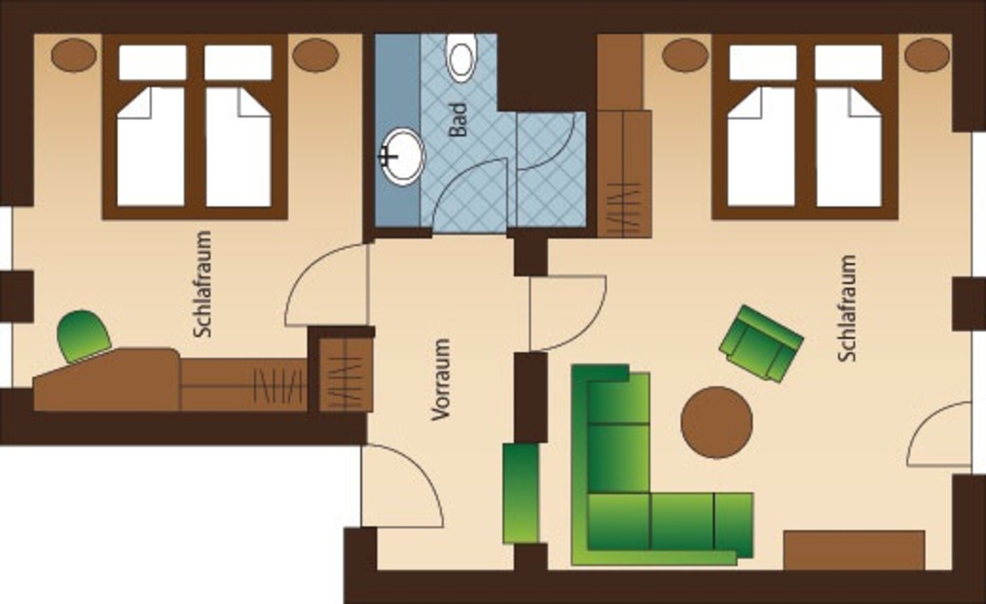 - two separate bedrooms, each with a double bed